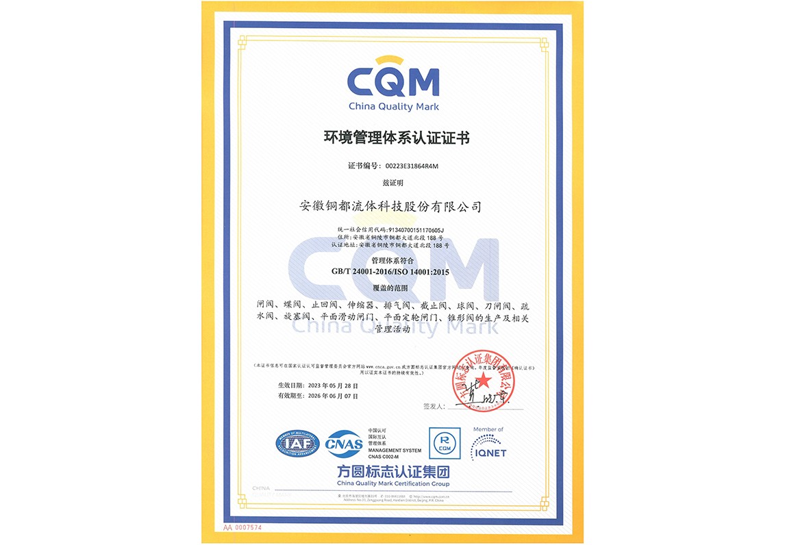 ISO14001環(huán)境管理體系認(rèn)證證書